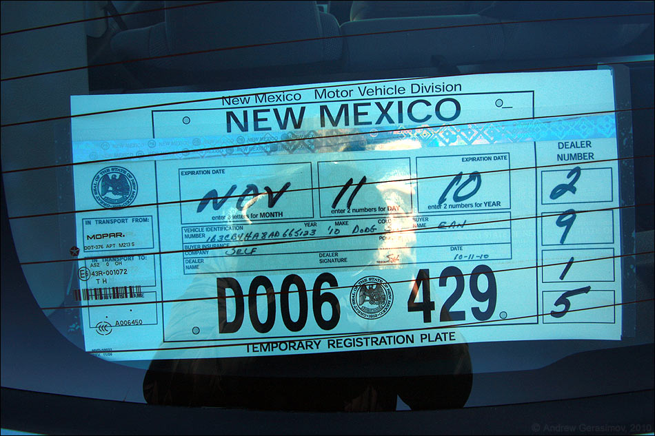Так выглядит временный автомобильный номер штата Нью-Мексико. Некоторые его вешают под стекло, некоторые вместо обычного номера.